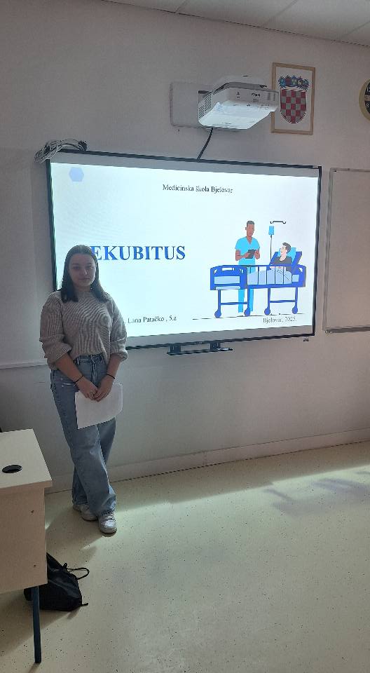 U povodu Dana prevencije dekubitusa, 20. studenoga 2025., učenice 5.a razreda Medicinske škole Bjelovar, Barbara Draženović i Lana Patačko, održale su edukativno predavanje za učenike 3.a, 3.b, 4.a, 4.b i 4.c razreda.