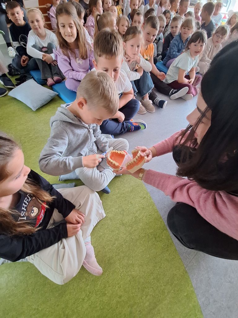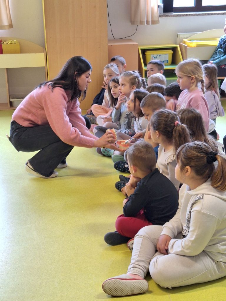 U sklopu aktivnosti promocije oralnog zdravlja, učenici 4.d razreda, u pratnji nastavnice Dejane Musa i školske psihologinje Marine Pavić, posjetili su Dječji vrtić Čazma.Kroz edukativan i zanimljiv igrokaz, čitanje šaljivih i poučnih pjesmica te demonstraciju pravilnog četkanja zubi, naši su maturanti na djeci prilagođen način približili važnost brige o oralnom zdravlju. Poseban naglasak stavljen je ne samo na pravilnu tehniku pranja zubi, već i na važnost prevencije kao ključnog čimbenika u očuvanju zdravih i jakih zubi.Djeca su pokazala zavidnu razinu znanja o pravilnoj prehrani i održavanju higijene usne šupljine te su aktivno sudjelovala u razgovoru o tome kako spriječiti nastanak „Grice i Greca“ – nepoželjnih neprijatelja zdravih zubi. Njihova znatiželja, otvorenost i spremnost na učenje dodatno su obogatili ovu edukativnu aktivnost.Posebno oduševljenje izazvala je Zubić Vila, koja je za svako dijete pripremila zanimljive i kreativne kutijice za čuvanje mliječnih zubića, čime je cijelo iskustvo dobilo dodatnu čar i potaknulo pozitivne emocije prema brizi o zubima.