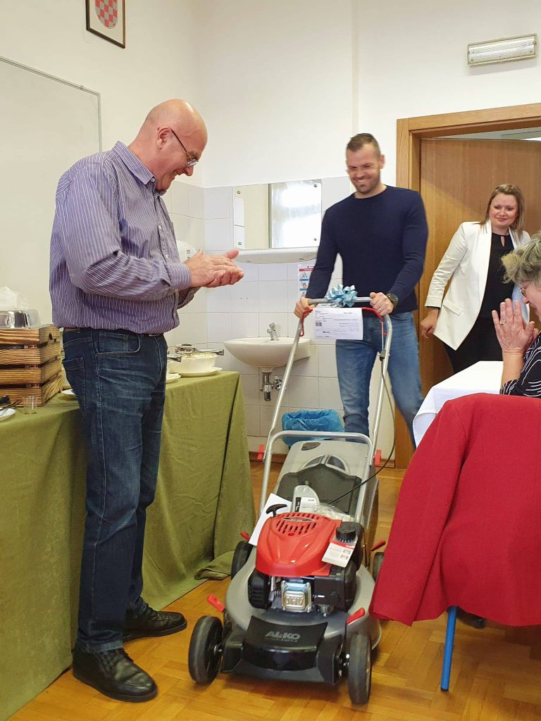 Kao znak zahvalnosti i pažnje uručen mu je poklon – kosilica, prema njegovoj želji, što dodatno simbolizira njegovu praktičnost i vrijednost koju je svakodnevno unosio u svoj rad.