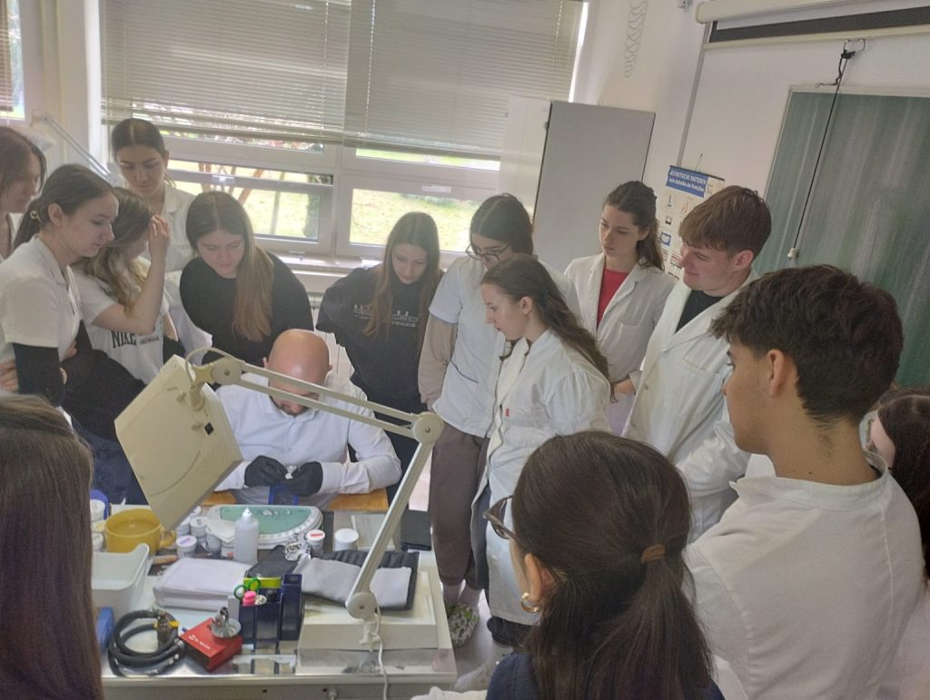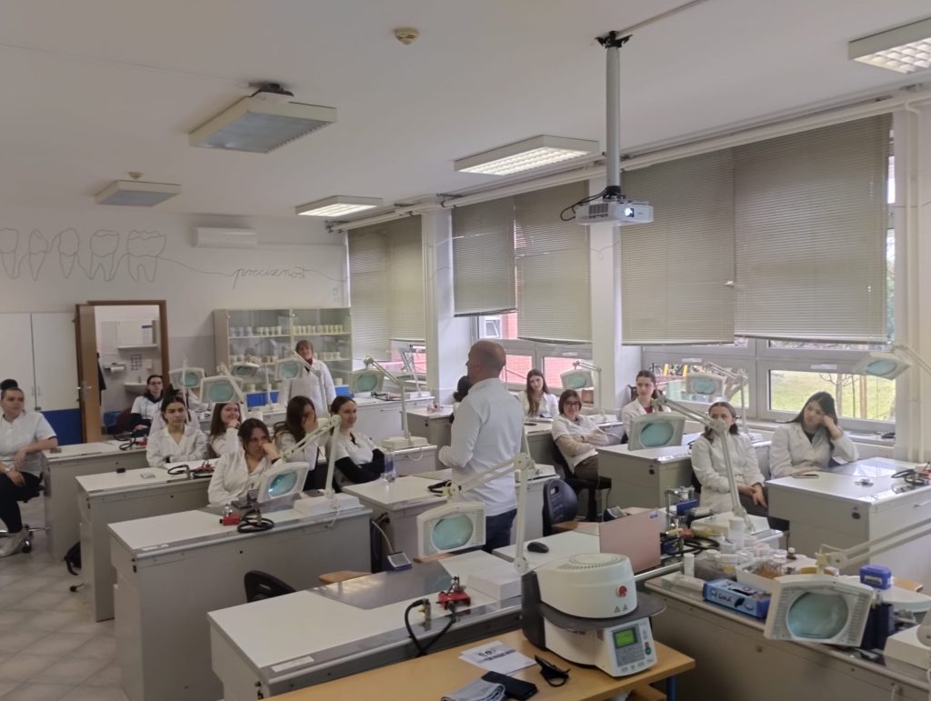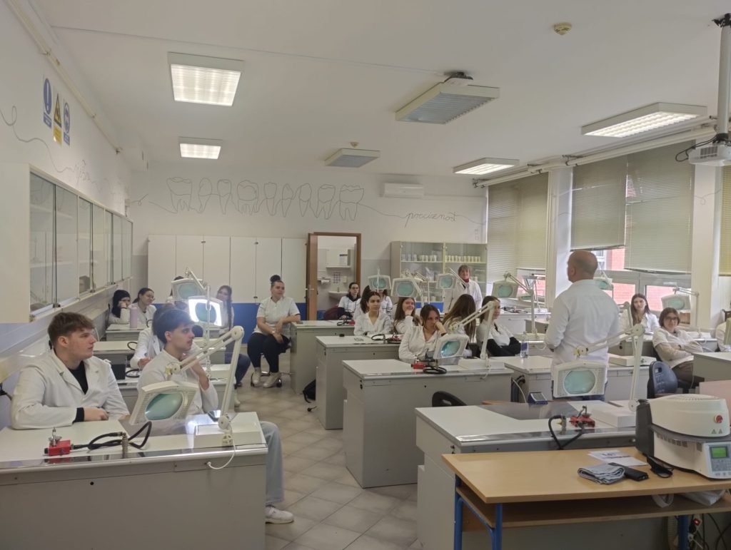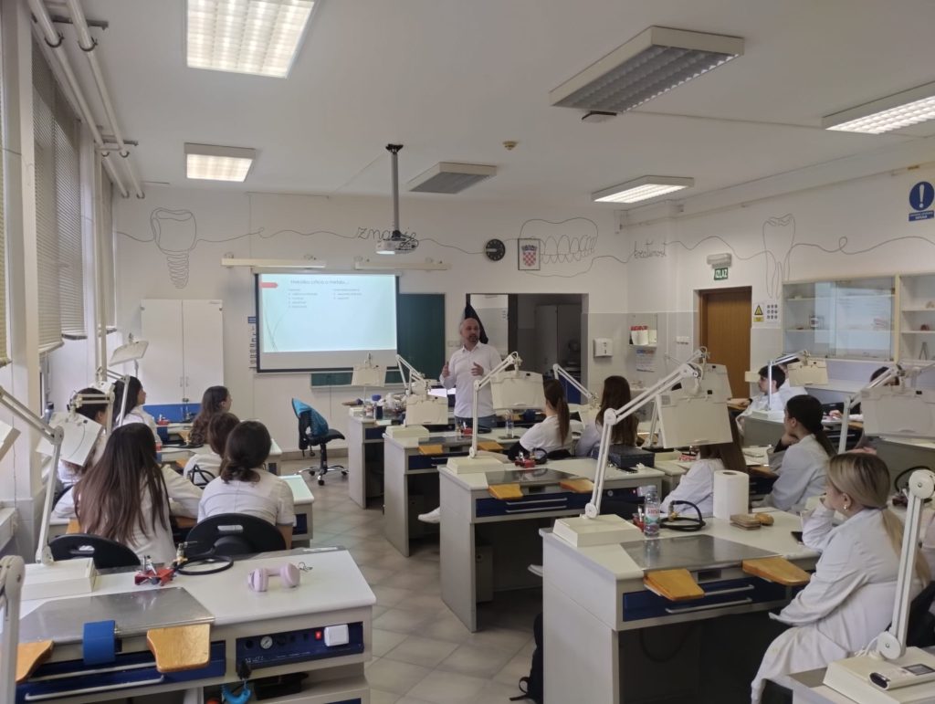 Učenici 4.d razreda Medicinske škole Bjelovar sudjelovali su 26. ožujka 2026. godine na predavanju bivšeg učenika smjera dentalni tehničar, tijekom kojeg su imali priliku upoznati se s iskustvima iz struke te mogućnostima profesionalnog razvoja.