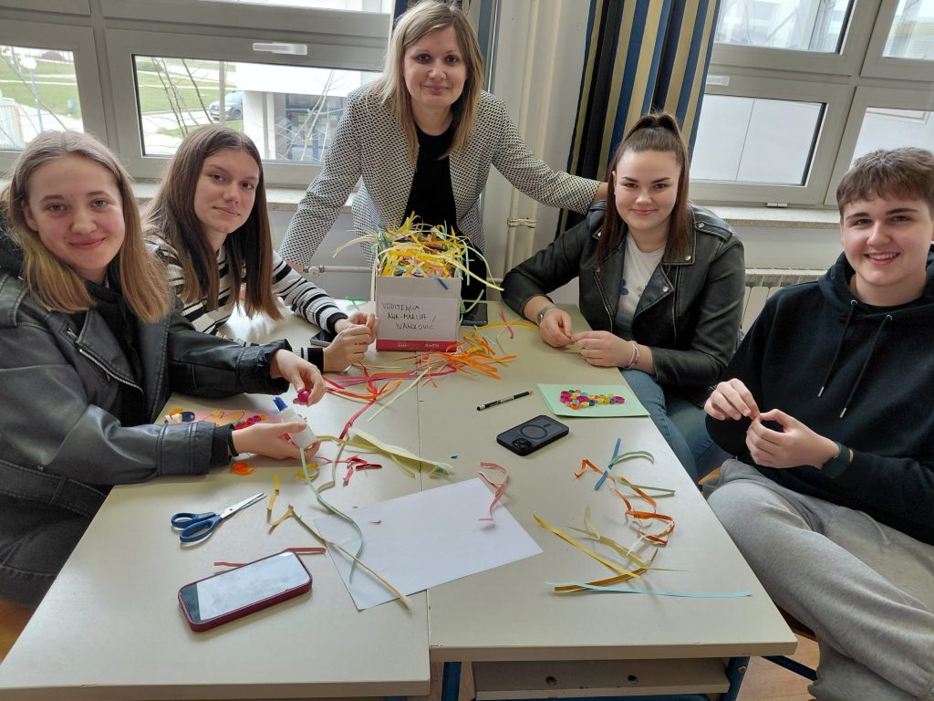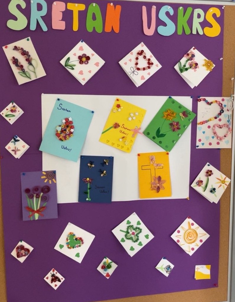 Kroz ovu radionicu učenici su razvijali finu motoriku, strpljenje i kreativnost, a izrađene čestitke iskorištene su za uređenje školskog panoa i prostora škole, čime je dodatno obogaćen uskrsni ugođaj.
