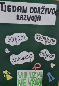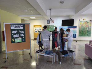 U srijedu, 1. listopada 2025., u našoj školi započeo je Sajam razmjene i darivanja odjeće. Nastavnici su donijeli staru, ali očuvanu odjeću, a učenici su je mogli slobodno uzeti prema svojim potrebama i željama.
