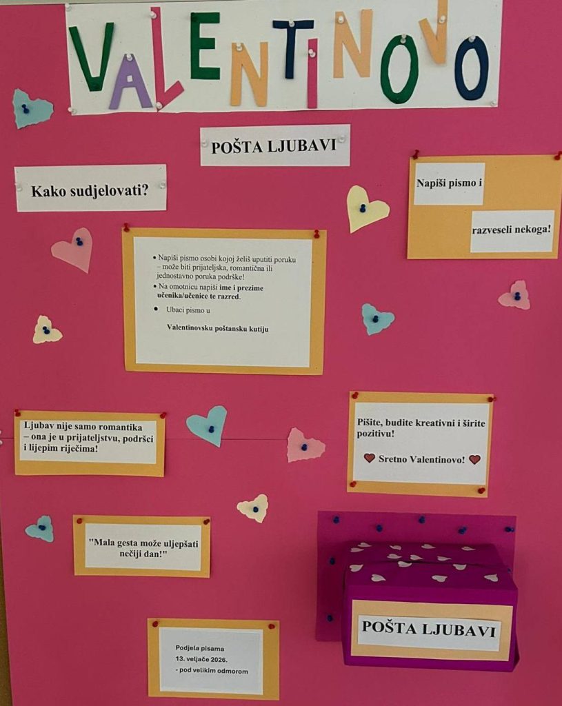 Tijekom nekoliko dana kutija „Pošte ljubavi“ punila se papirićima, kuvertama i porukama, a u petak, 13. veljače - uoči Valentinova sve su poruke podijeljene njihovim primateljima. Uz malo uzbuđenja i mnogo osmijeha, škola je na trenutak postala mjesto lijepih riječi i pozitivnih emocija.
